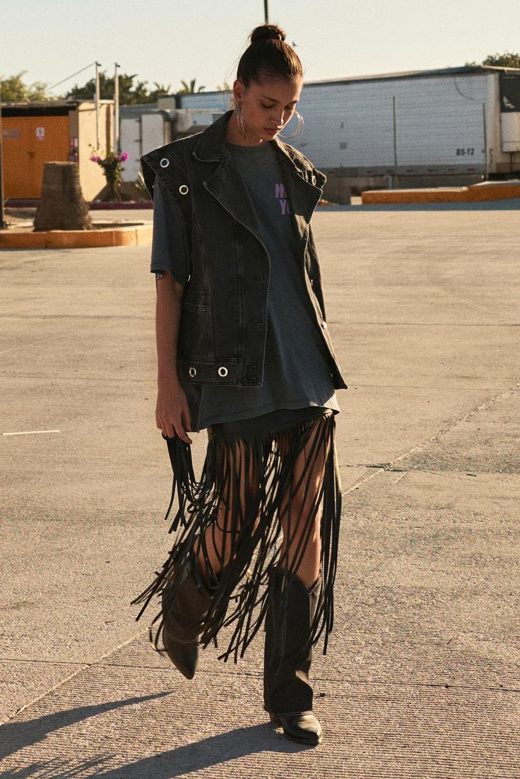 La veste frange est un incontournable. Sur une veste en daim, elle apporte immédiatement une allure libre et affirmée, sur une robe ou une jupe, elle joue sur la fluidité et l'élégance. pour les amoureuses du détails, la frange se retrouvent sur les bottes et accessoires transformant une simple tenue en un look bohème.